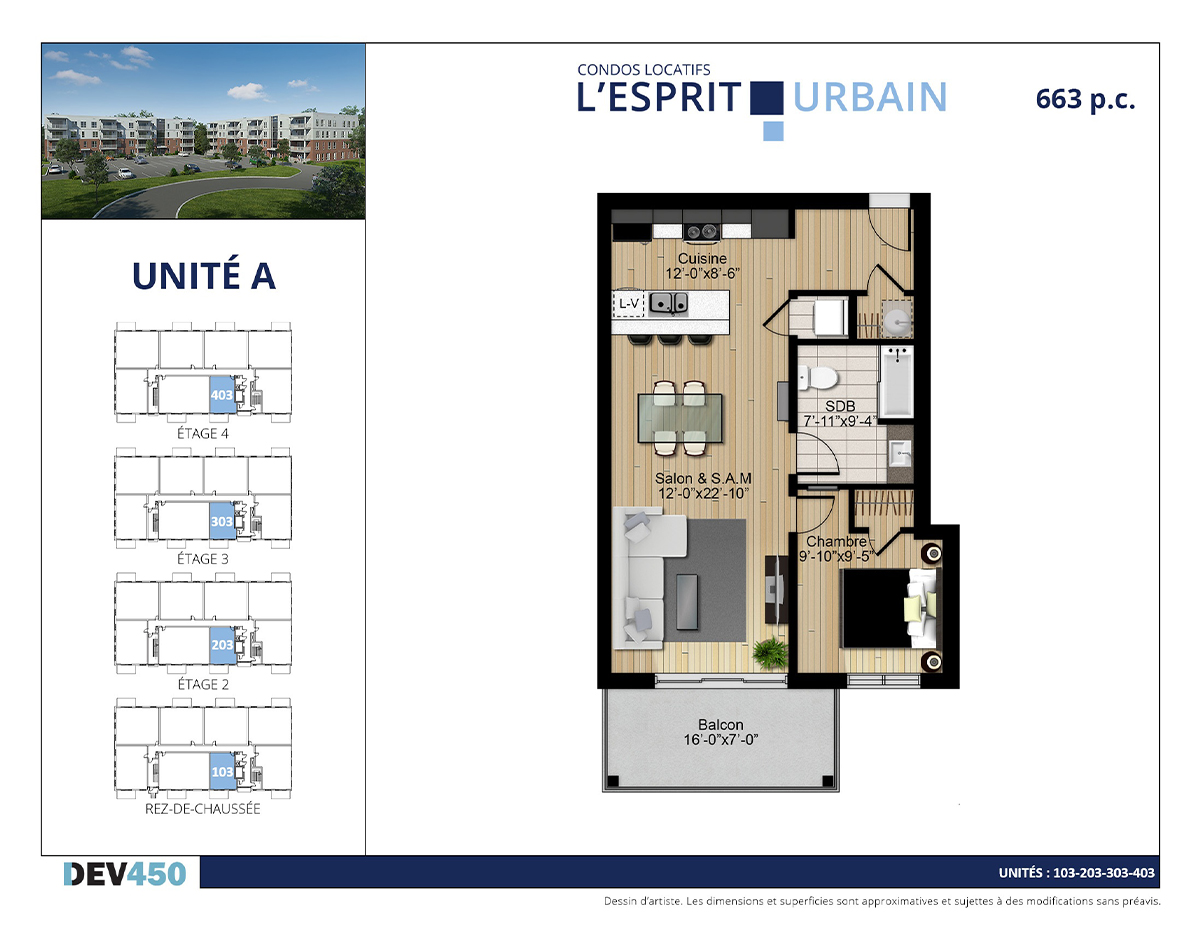 | 1 | A | 103 | Rdc | 3 1/2 | 663 | Date à venir | Disponible | |