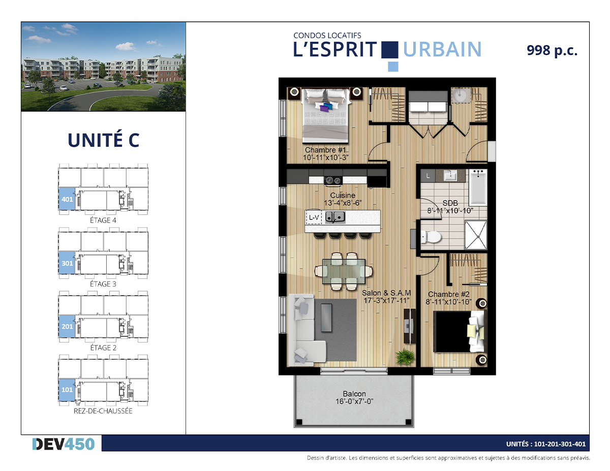 | 3 | C | 101 | Rdc | 4 1/2 | 998 | Date à venir | Disponible | |
