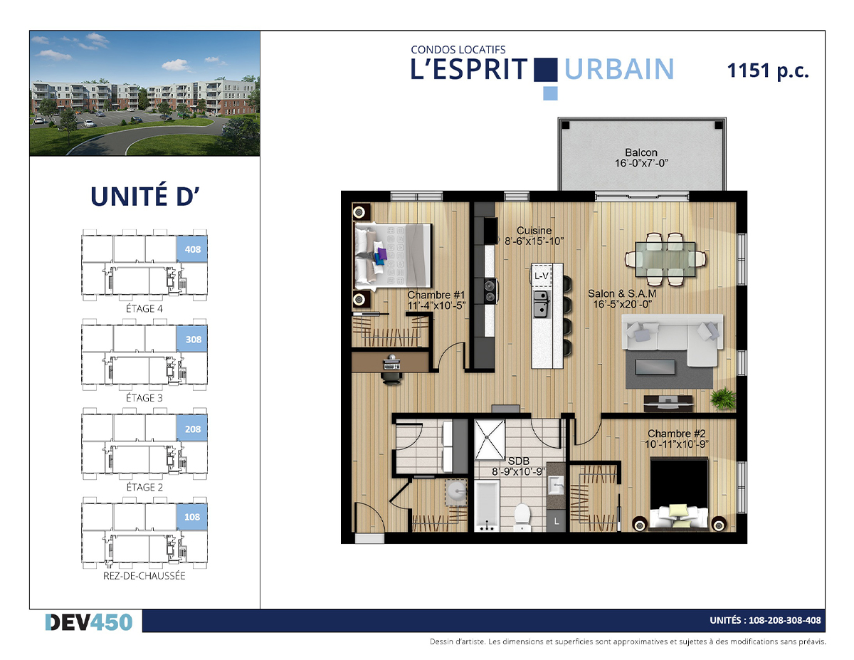 | 55 | D’ | 208 | 2 | 4 1/2 | 1151 | Date à venir | Disponible | |