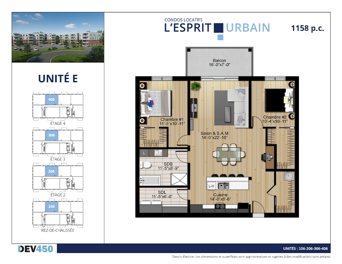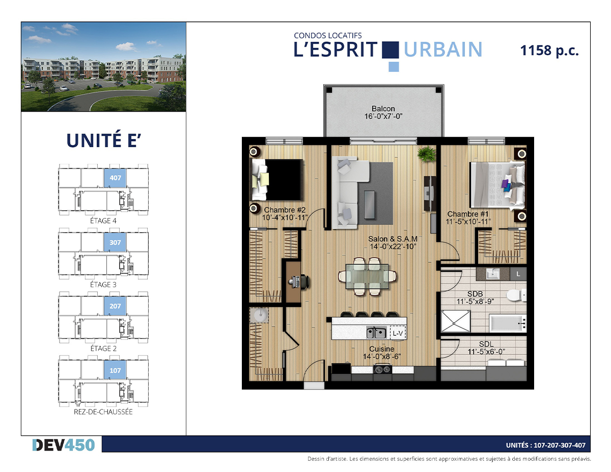 | 73 | E’ | 407 | 4 | 4 1/2 | 1158 | Date à venir | Disponible | |