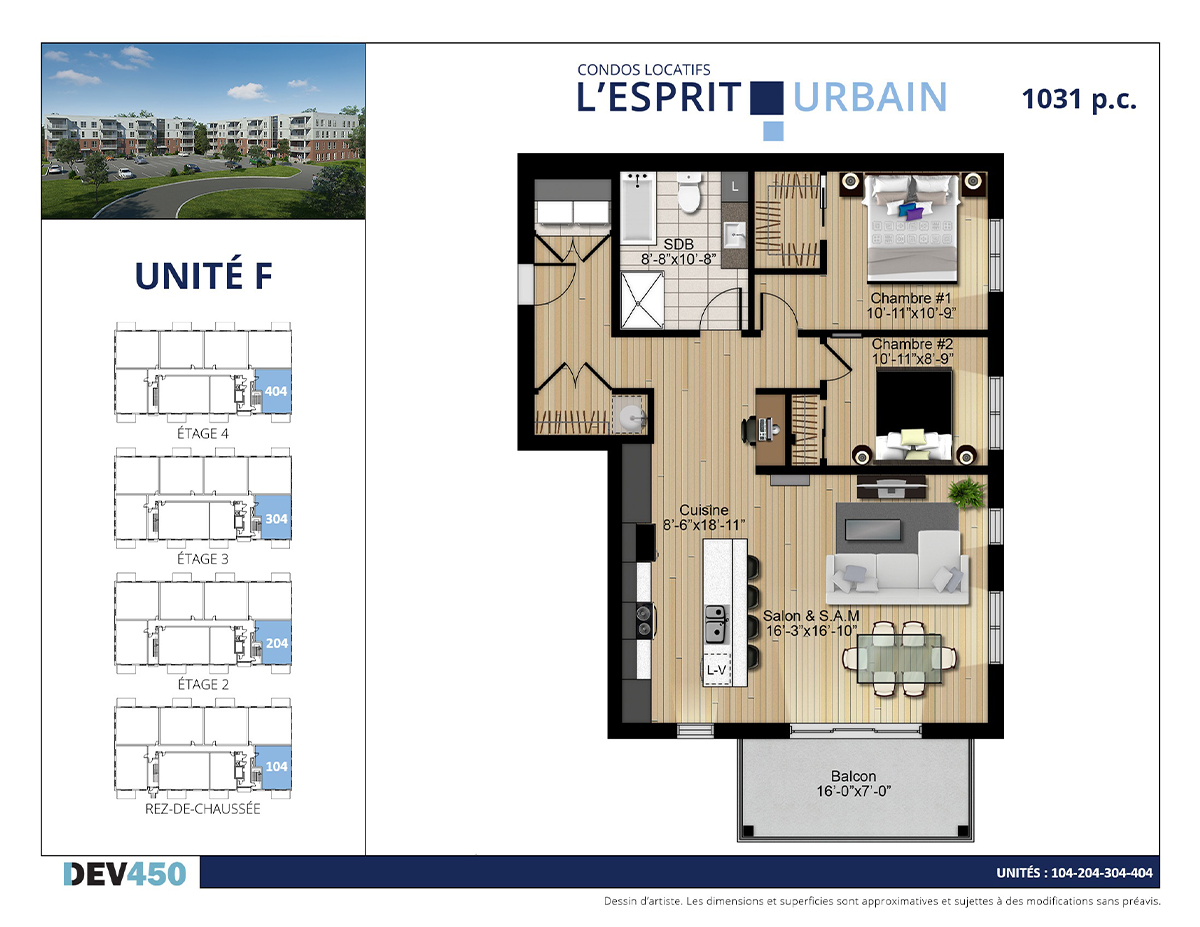 | 74 | F | 404 | 4 | 4 1/2 | 1031 | Date à venir | Disponible |